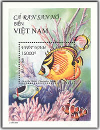 On 07.8.2000, Department General of Posts & Telecommunications (DGPT) issues the stampset "Coral-sea fish in Vietnam" consisting of 6 values and one block featuring several coral-sea fish species of good shapes & beautiful colours that are fond of and raised for ornament in the house.