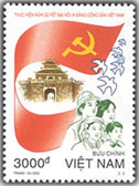 In order to propagate the main content of resolution of the 9 th Congress, on February 1, 2002, the Department General of Posts & Telecommunications (DGPT) issues the stampset "Implementing the Resolution of the Vietnam Communist Party's 9th Congress" consisting of 2 values with their denominations of 800d and 3,000d respectively.