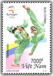 H×nh ¶nh trªn tem thÓ hiÖn nh÷ng ®éng t¸c tèc ®é nhanh, døt kho¸t vµ t thÕ ch¾c, khoÎ trong thÓ thao cña vËn ®éng viªn ViÖt Nam cïng biÓu trng Sydney 2000.