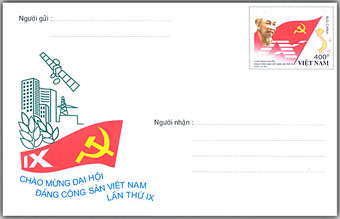 Ngoµi tem vµ phong b× FDC, ngµnh Bu ®iÖn cßn ph¸t hµnh 01 phong b× in s½n tem ®Ó chµo mõng §¹i héi §¶ng Céng S¶n ViÖt Nam lÇn thø IX.