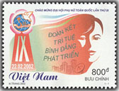 §Ó chµo mõng sù kiÖn quan träng nµy, ngµy 21/02/2002, Tæng côc Bu ®iÖn ph¸t hµnh bé tem "Chµo mõng §¹i héi Phô n÷ toµn quèc lÇn thø IX". Bé gåm 01 tem, gi¸ mÆt 800® thÓ hiÖn h×nh ¶nh ngêi phô n÷ ViÖt Nam trÎ trung, ®«n hËu, nô cêi duyªn d¸ng, vÎ ®Ñp vÒ trÝ tuÖ, t©m hån vµ truyÒn thèng.
